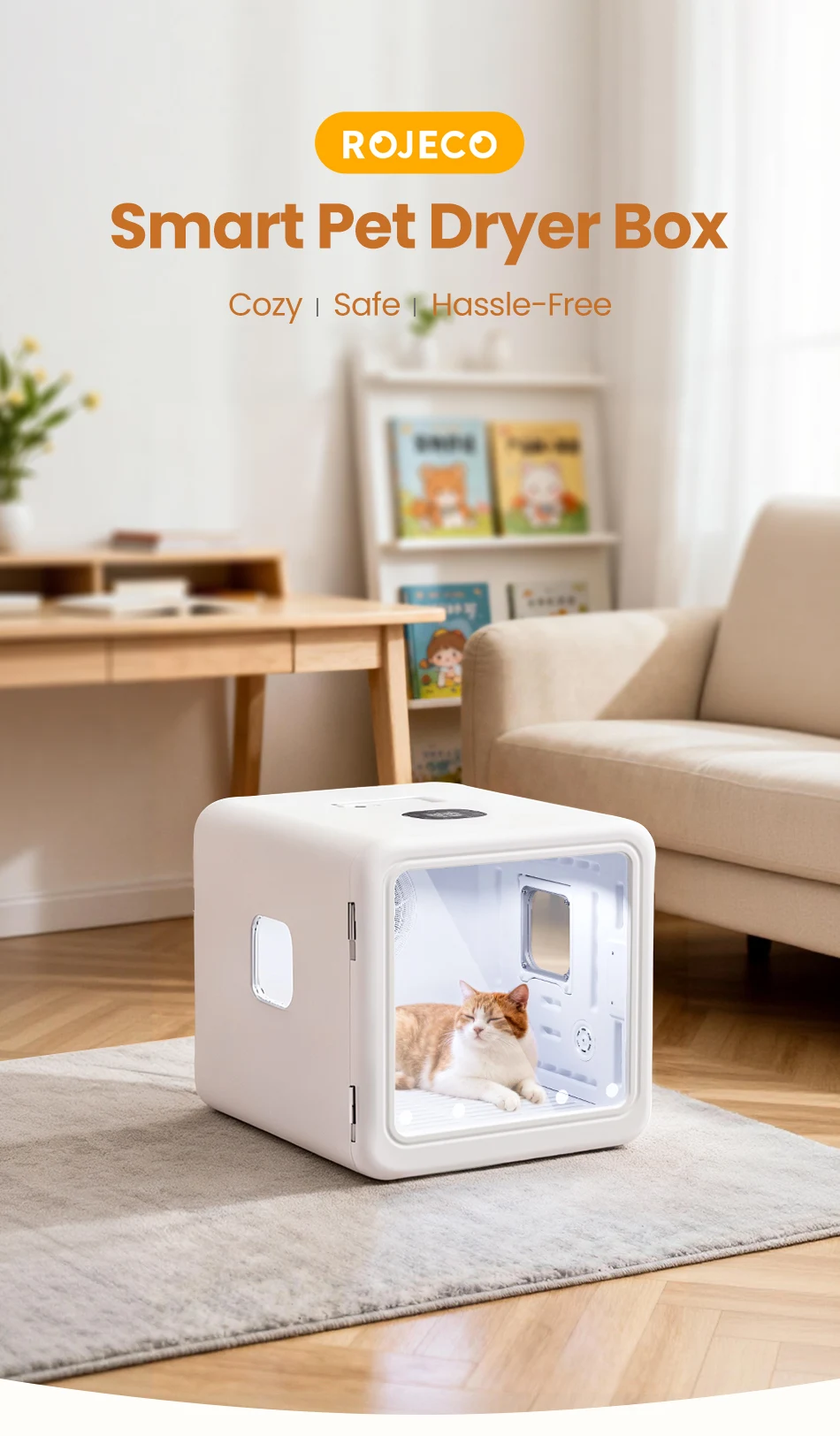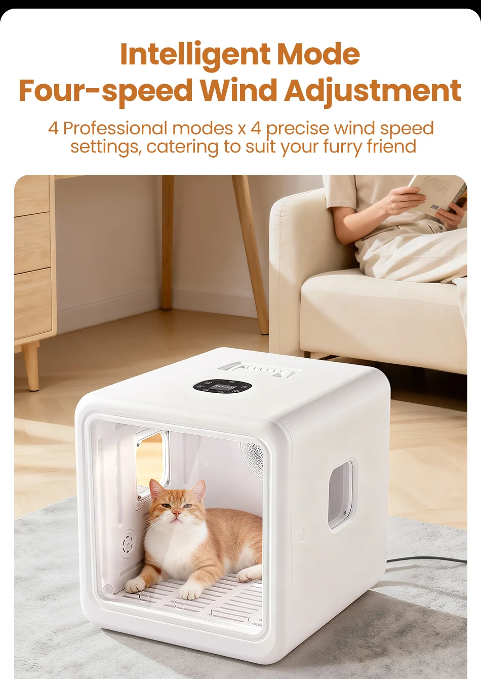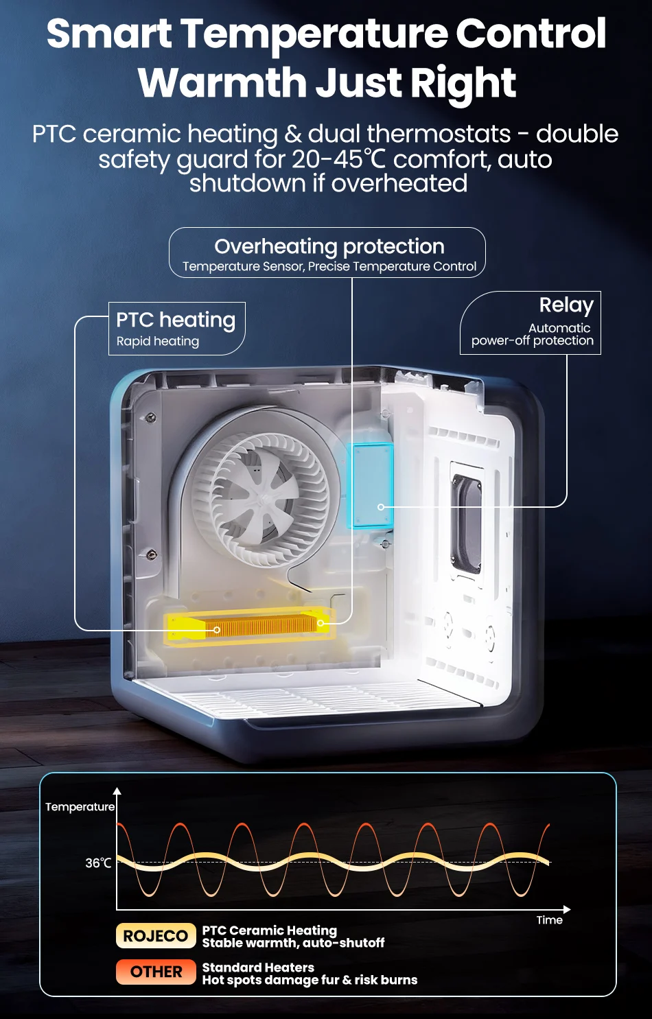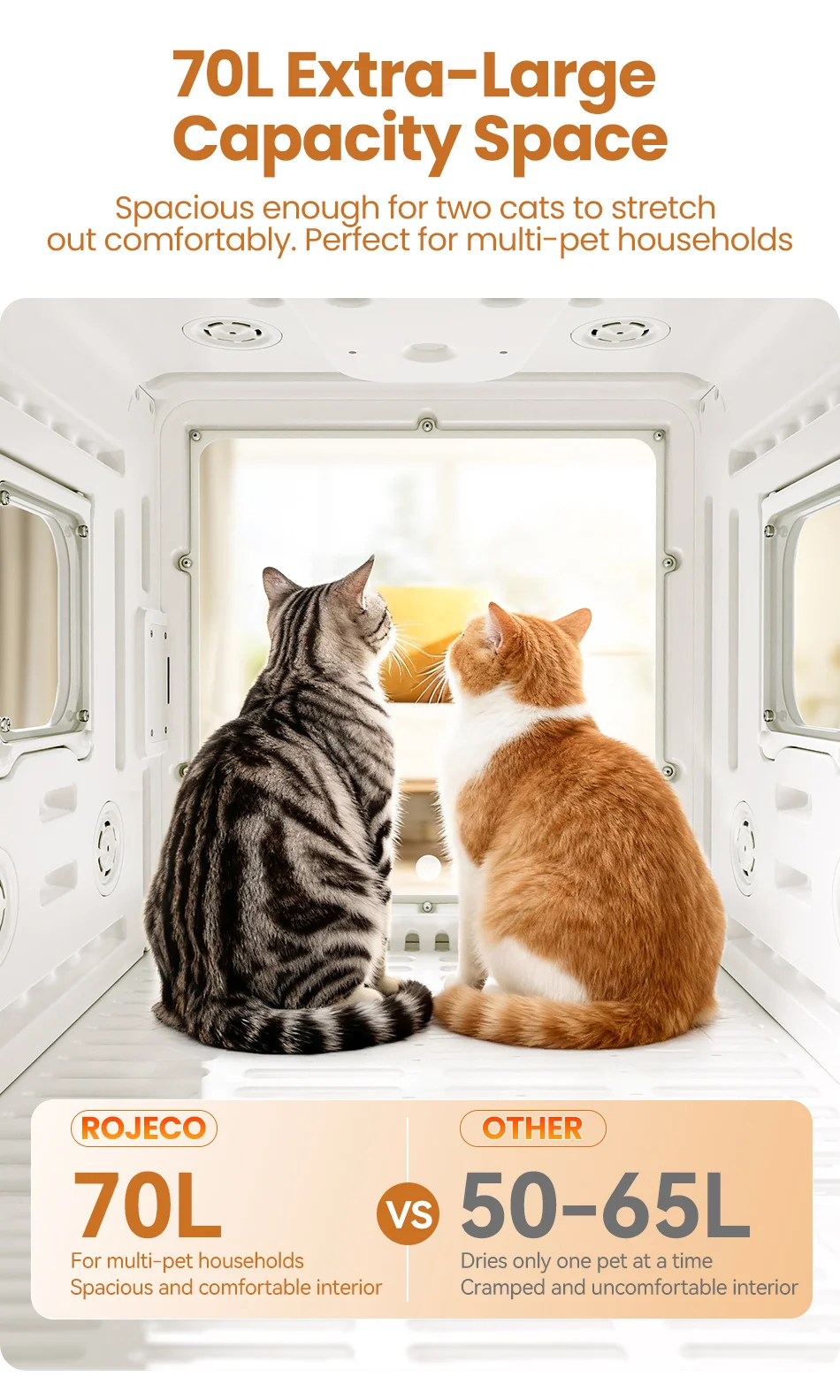 ROJECO Automatic Pet Drying Box 70L Smart Temperature Control 360° Ultra Quiet Pet Hair Grooming For Dog Cat Dryer Box 4 Speed