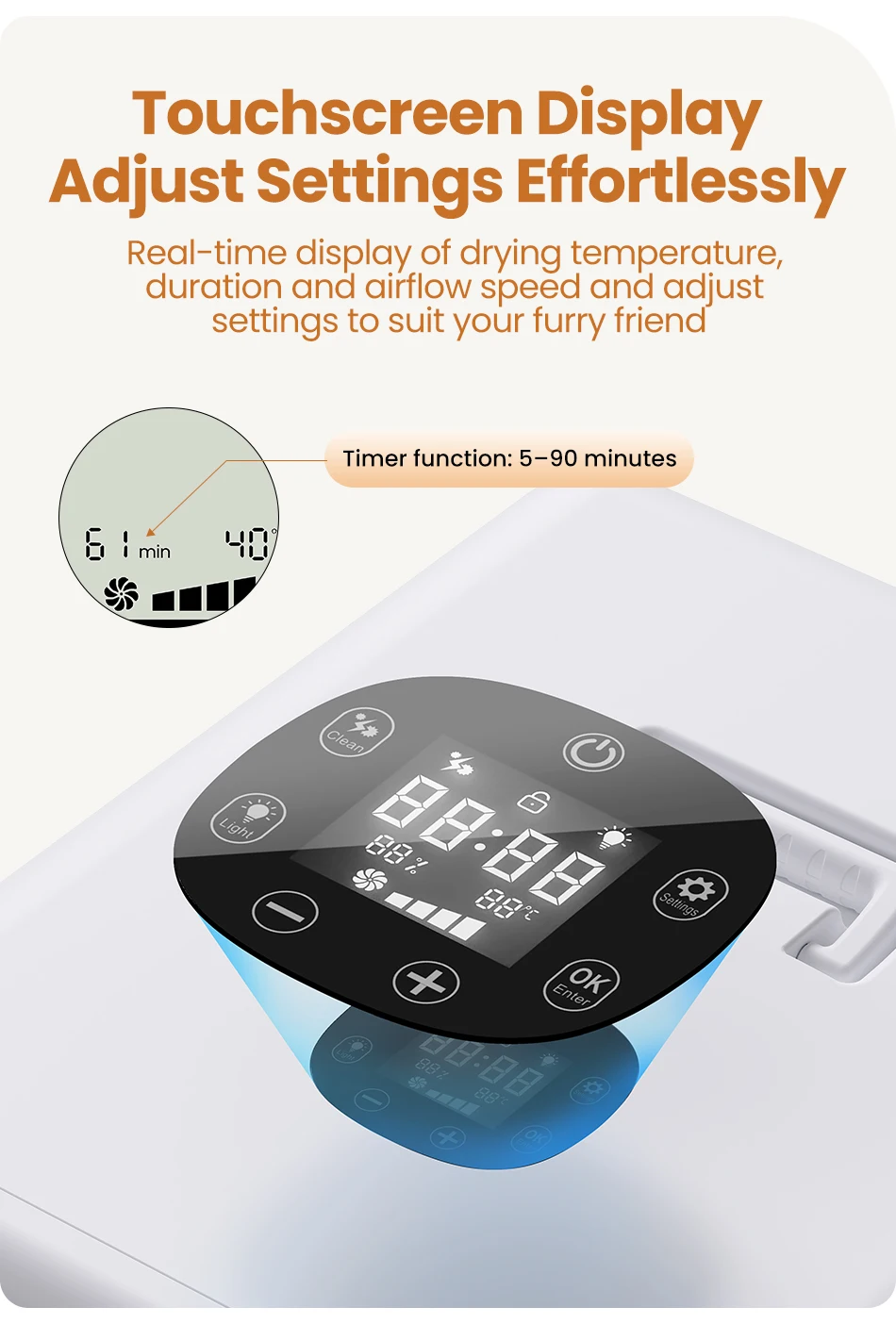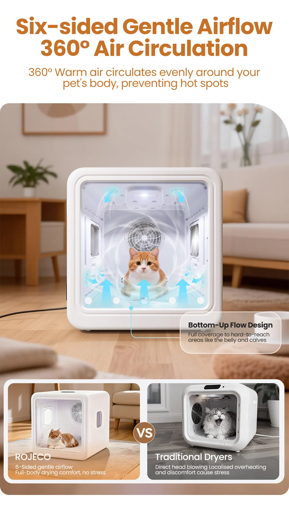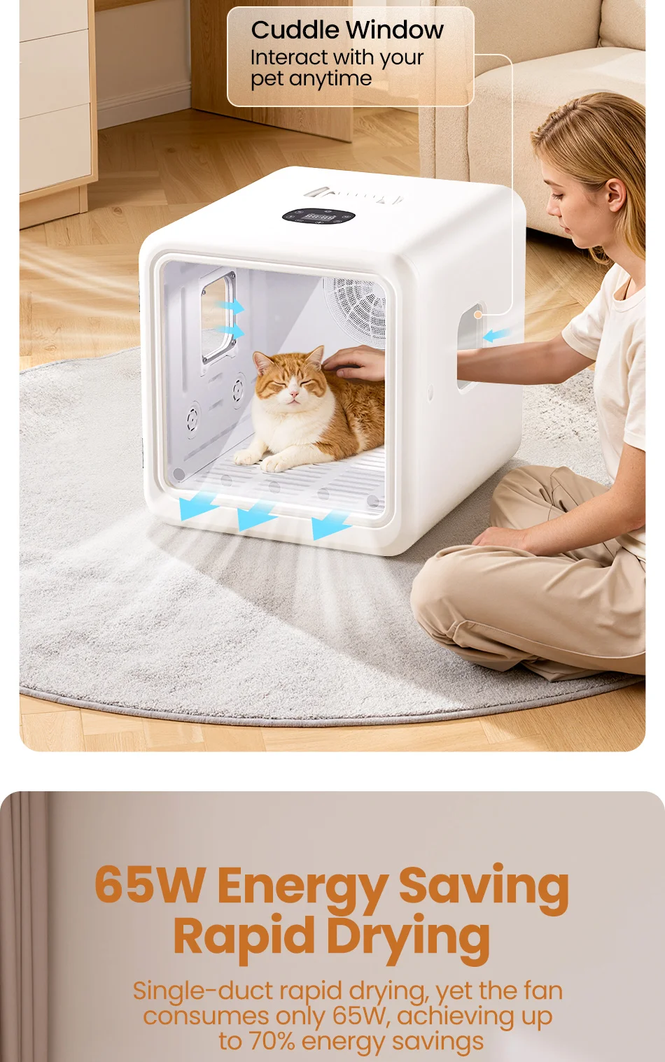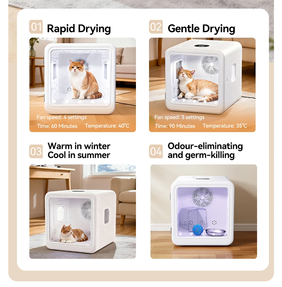 ROJECO Automatic Pet Drying Box 70L Smart Temperature Control 360° Ultra Quiet Pet Hair Grooming For Dog Cat Dryer Box 4 Speed