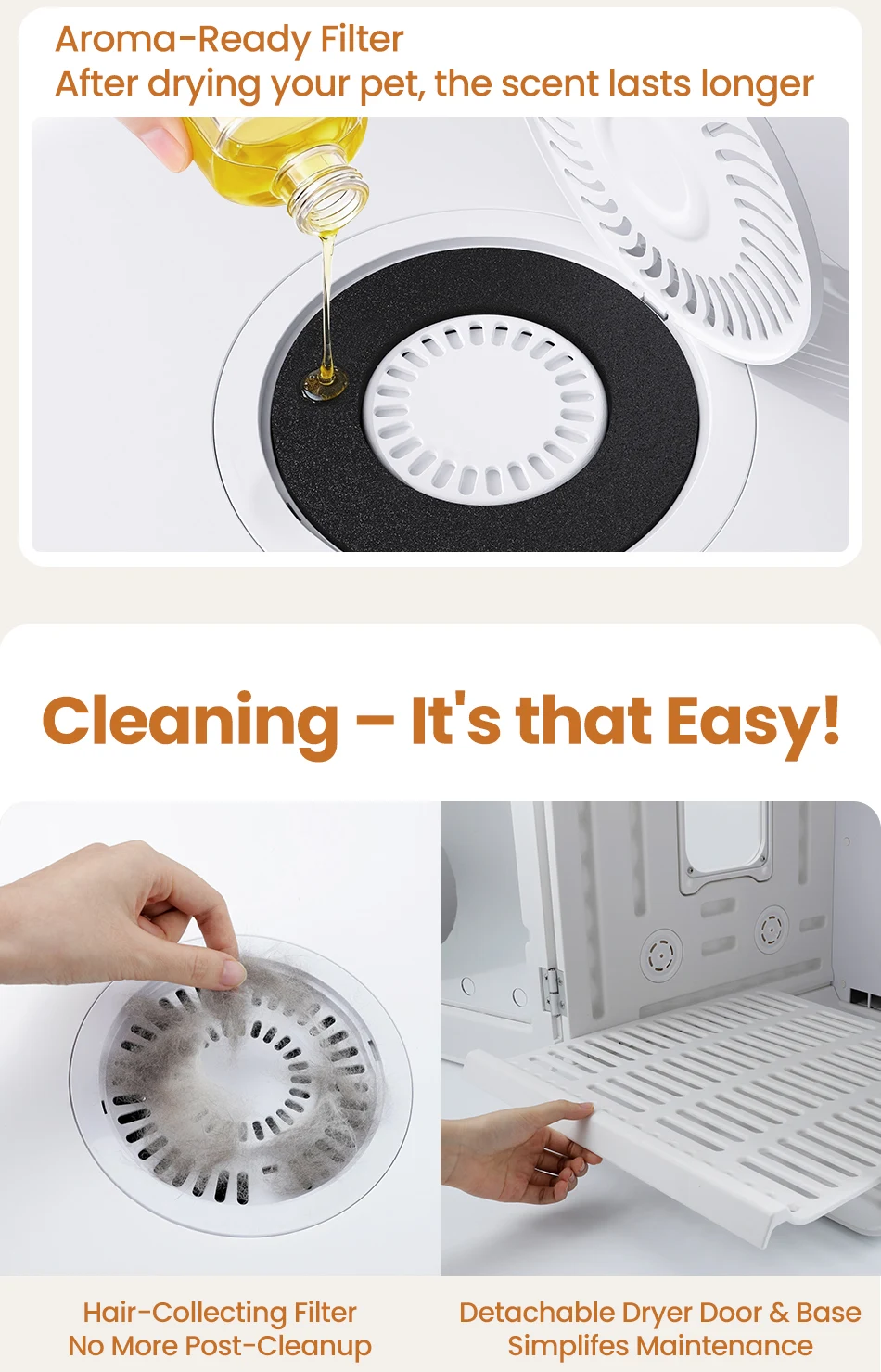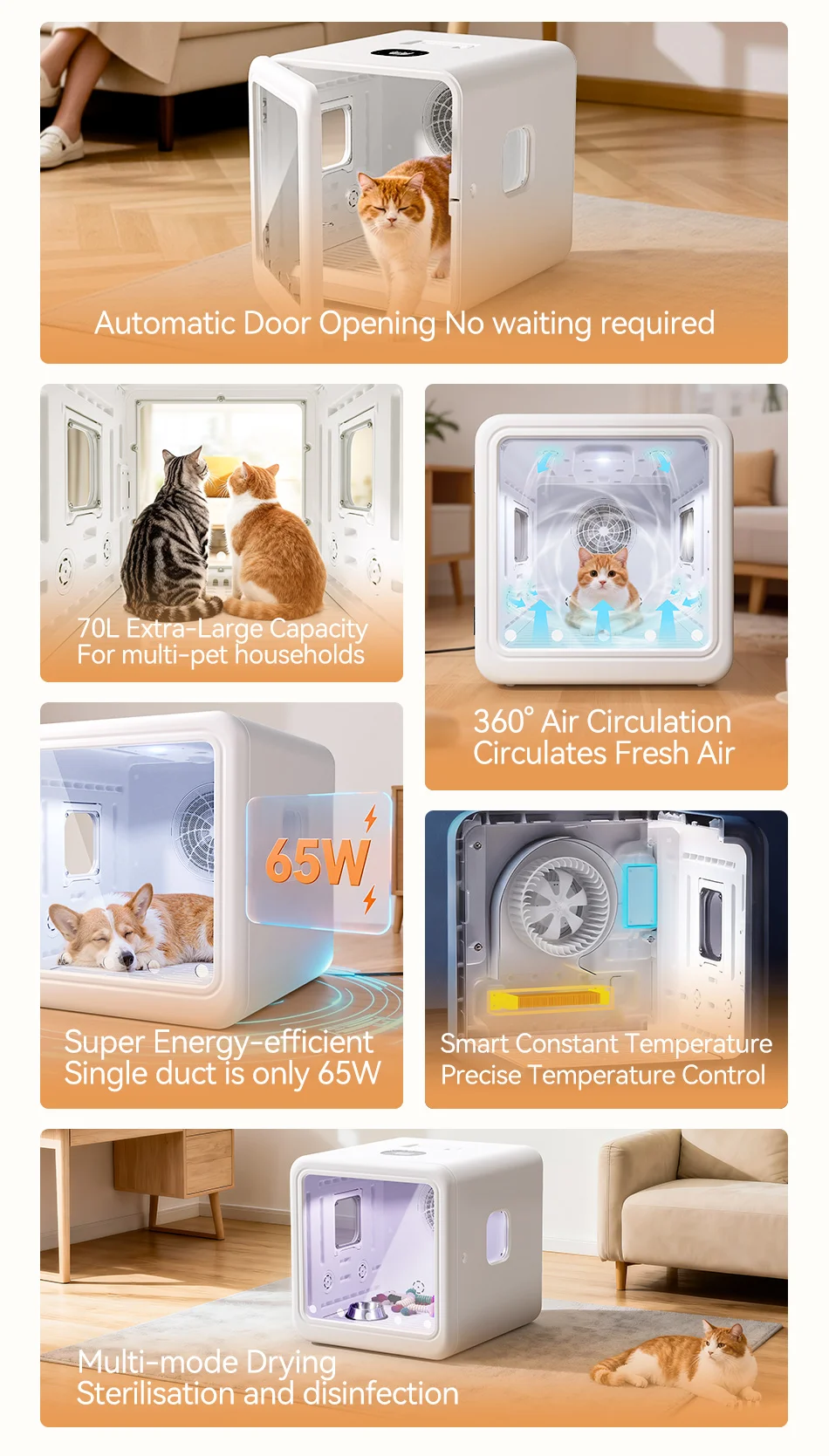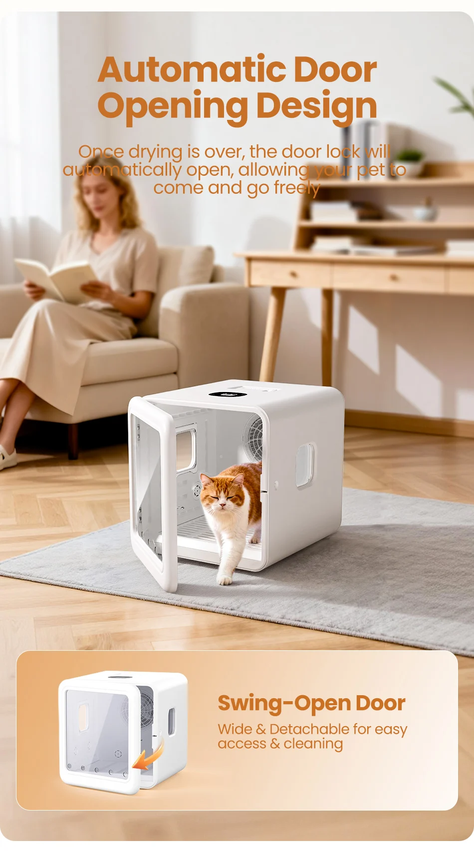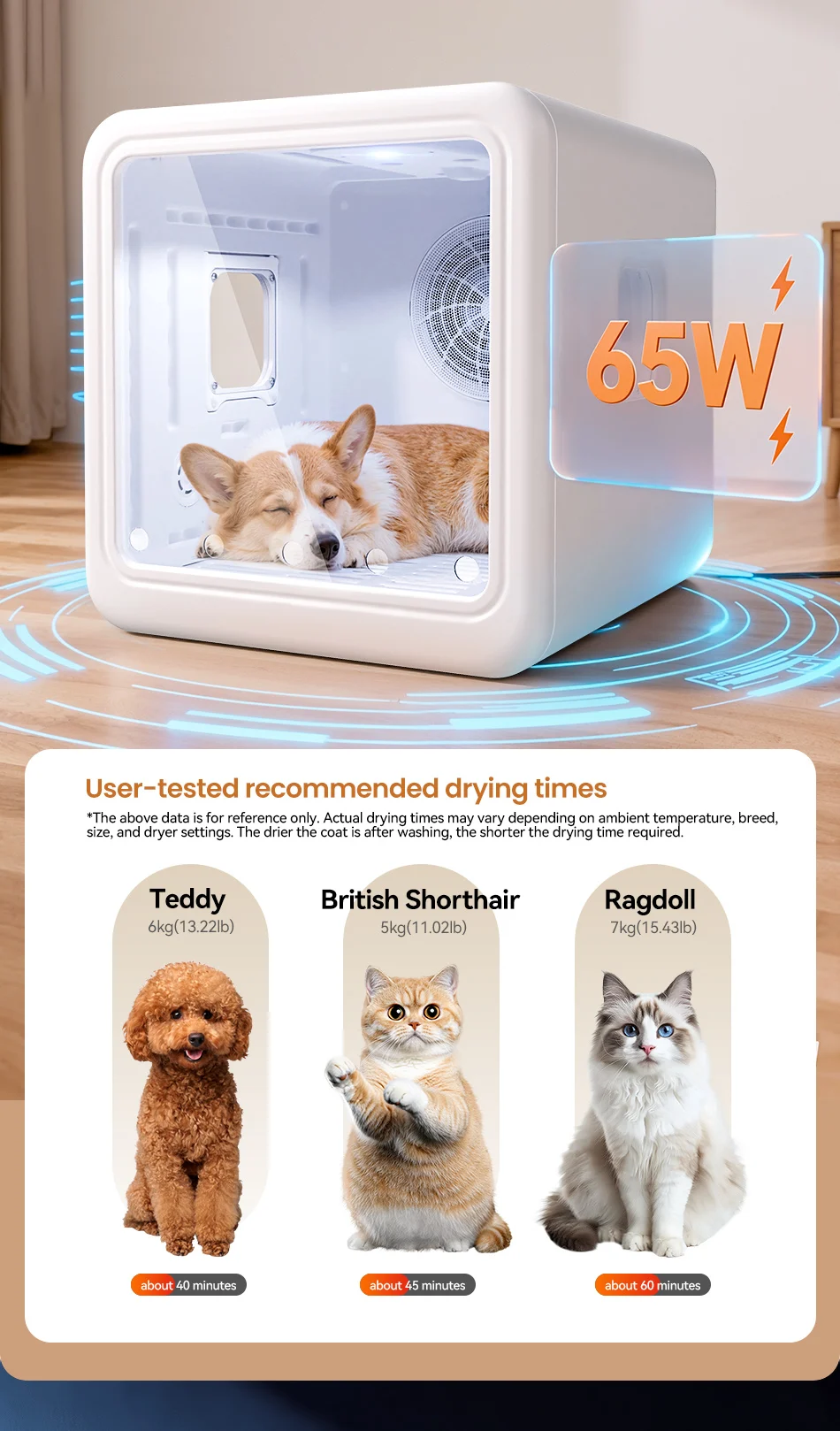 ROJECO Automatic Pet Drying Box 70L Smart Temperature Control 360° Ultra Quiet Pet Hair Grooming For Dog Cat Dryer Box 4 Speed
