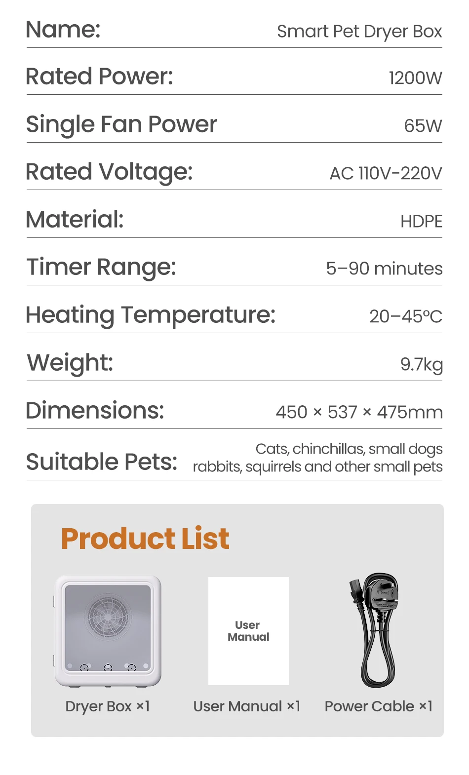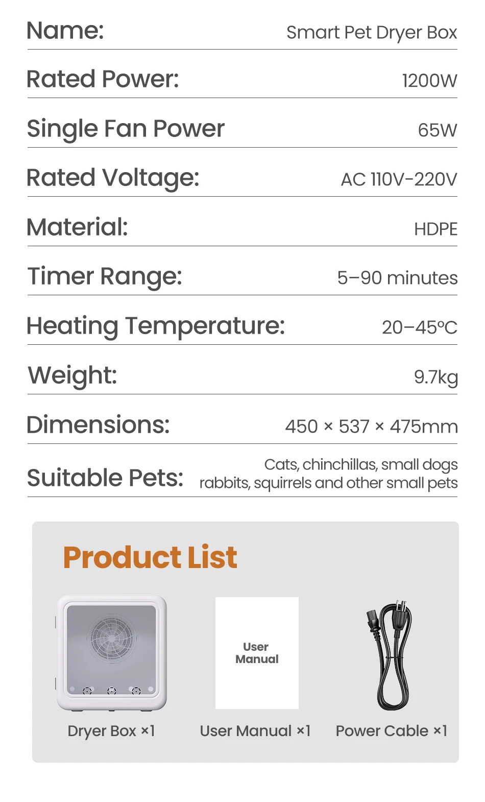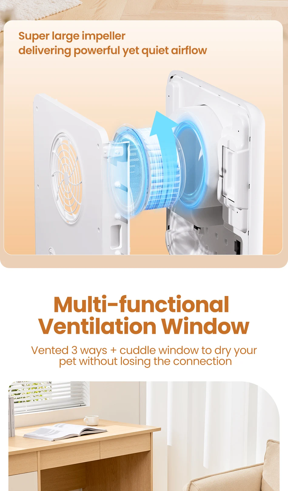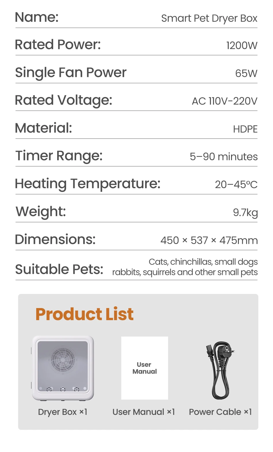 ROJECO Automatic Pet Drying Box 70L Smart Temperature Control 360° Ultra Quiet Pet Hair Grooming For Dog Cat Dryer Box 4 Speed